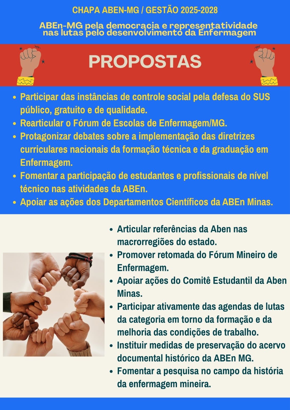 O grupo propõe uma gestão coletiva, plural e democrática, orientada pelo diálogo, pela participação das bases e pelo compromisso ético e político da ABEn com o desenvolvimento da profissão.